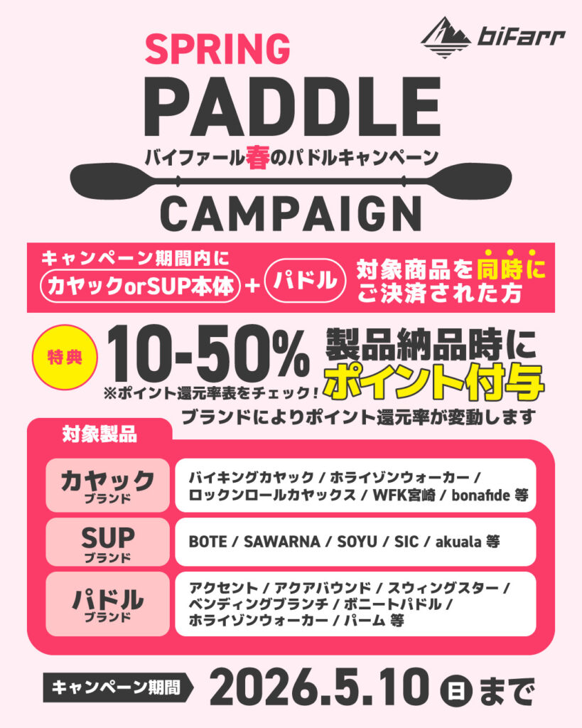 独自のbifarr製品の他に、選び抜いた海外ブランドのカヤック、SUP製品等の取扱販売をしています。