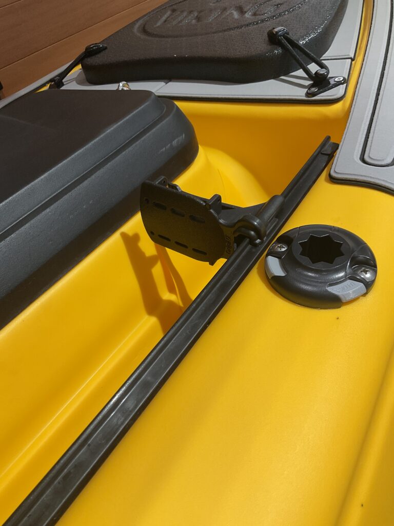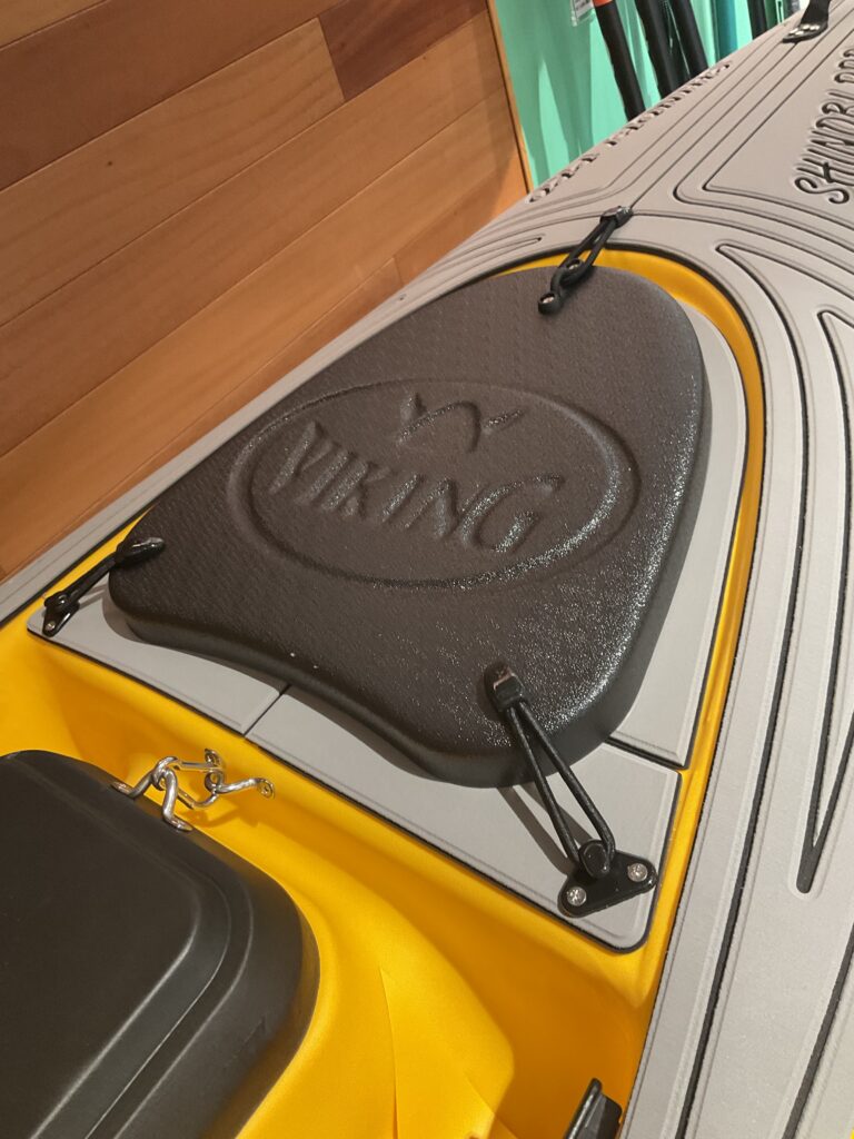 従来のバイキングカヤックのフットペダルでは上手くハマっていないと力んだ時に外れてしまうことが多々ありましたが、新型忍Proもレール式になり今までよりも細かい位置調整が出来る上、外れることもなくなり、より快適なパドリングができるのではないでしょうか。