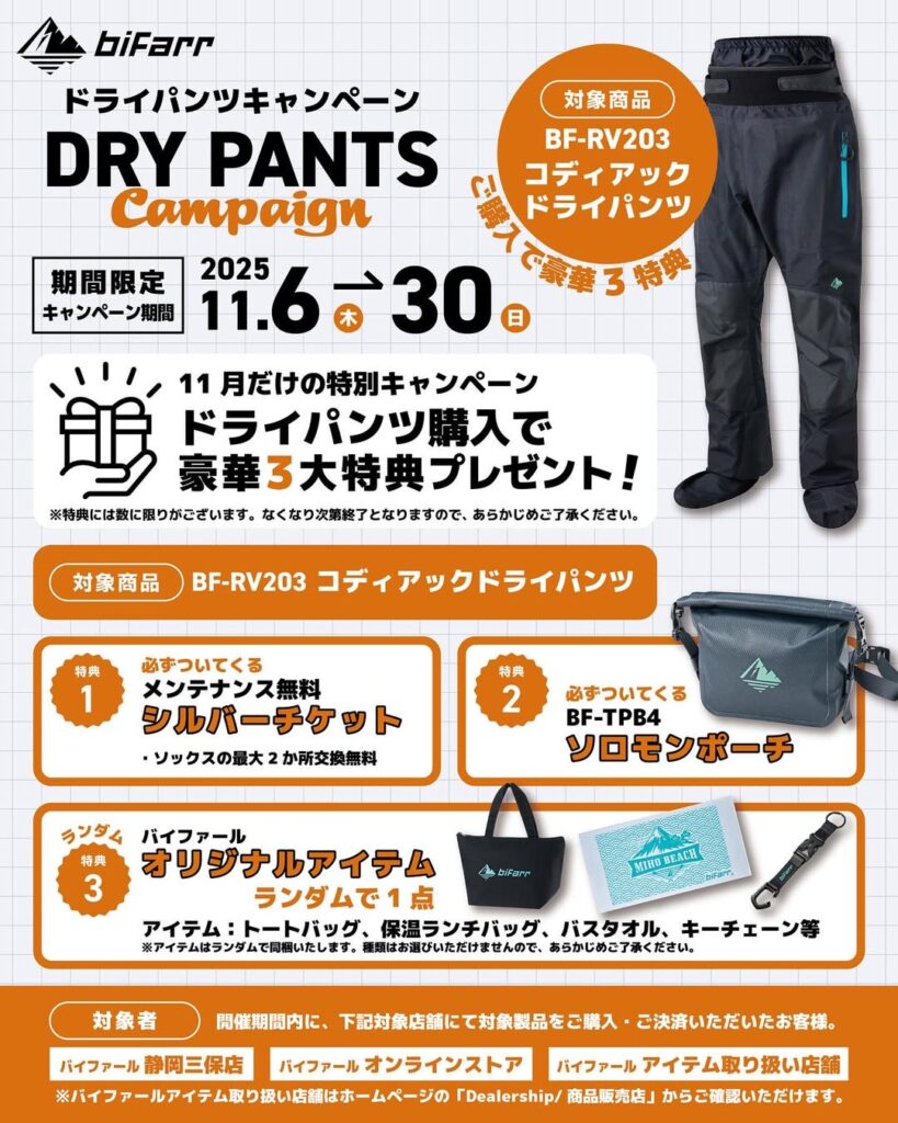 bifarrドライスーツ&ドライパンツWキャンペーン!